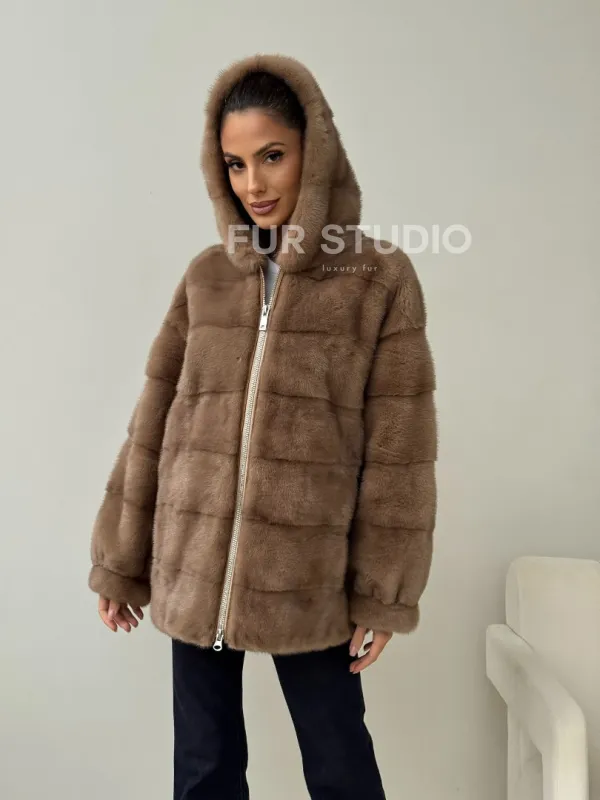 Бежевая норковая куртка с капюшоном доступна для покупки в нашем магазине Furs Studio в , с возможностью доставки в любой город России. Добавьте немного стиля и элегантности в свой гардероб с этой курткой, которая будет вам служить многие годы, подчеркивая ваш неповторимый стиль.