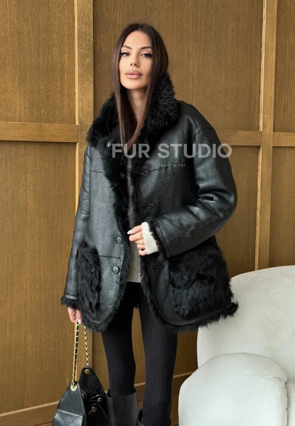 Черная двухсторонняя дубленка из меха тиградо доступна для покупки в нашем шоуруме Furs Studio в , а также предлагается удобная доставка во все города России. Обогатите свой гардероб этой дубленкой, которая прослужит вам многие годы, добавив немного роскоши в ваш повседневный образ.