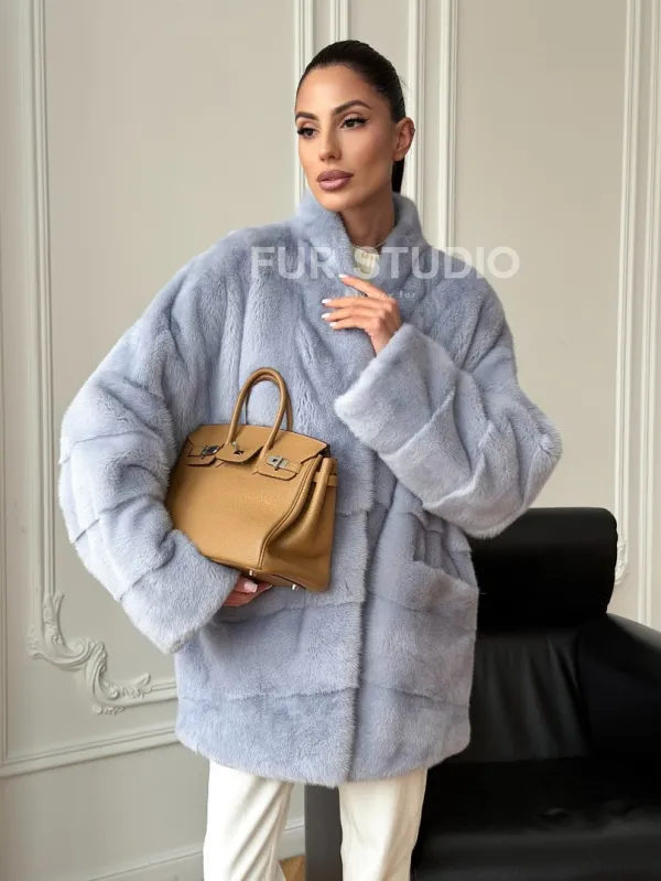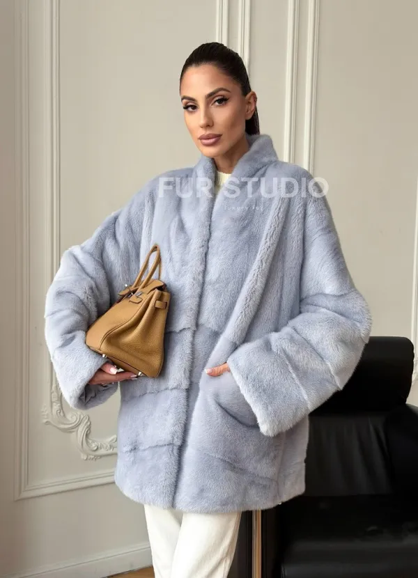 Голубая норковая шуба - жакет 102728