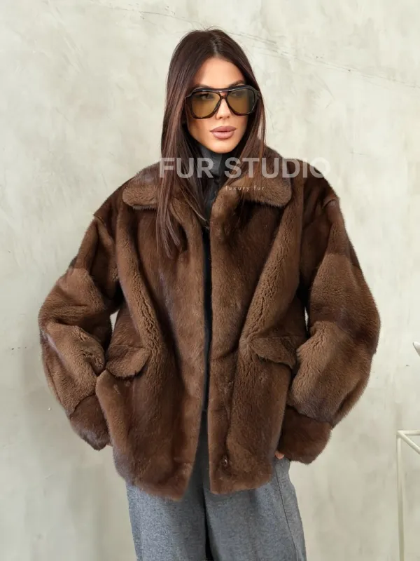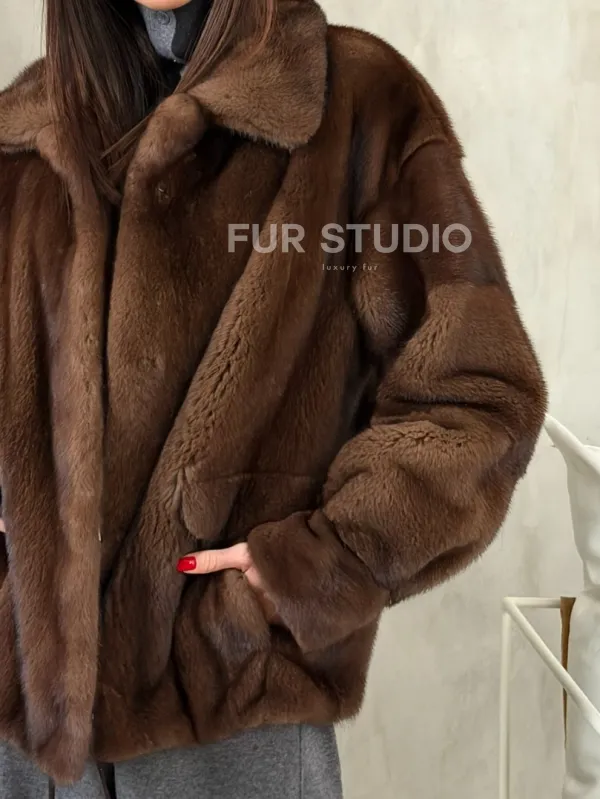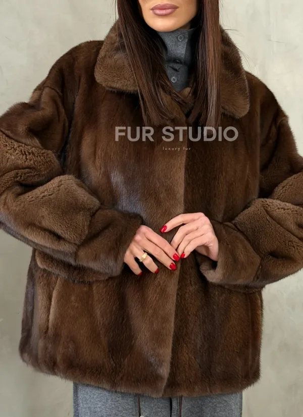 Мех данной шубы аукционная норка, цвет коричневый. Предлагается в размерах от 42 до 50. Длина модели 65-70 см, что выгодно подчеркивает фигуру девушек. Эта модель идеально подойдет для девушек и женщин, предпочитающих роскошные натуральные меха.
