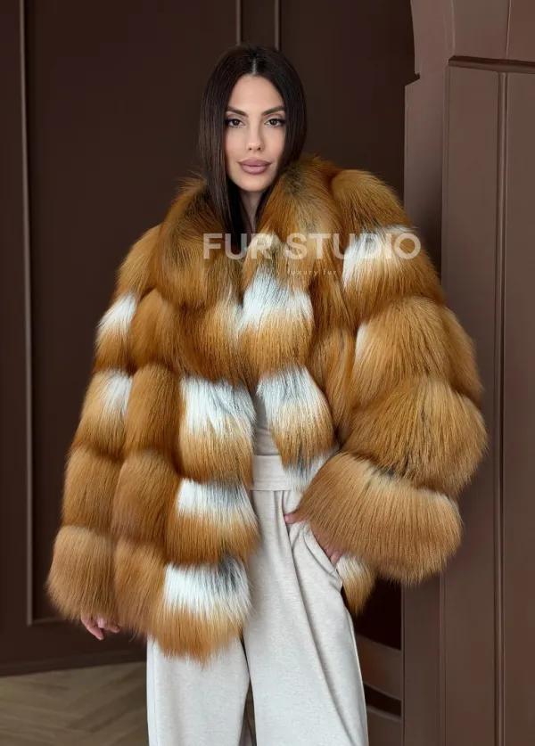 Короткая шуба из рыжей лисы 102903