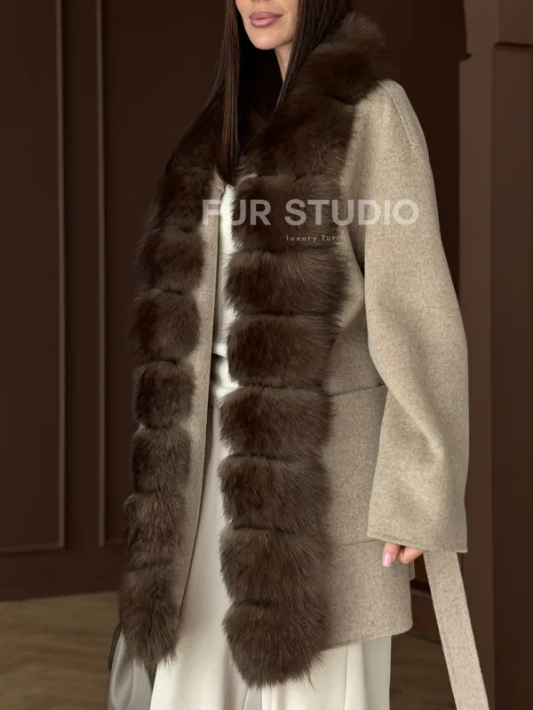 Пальто с отделкой из меха песца 102908
