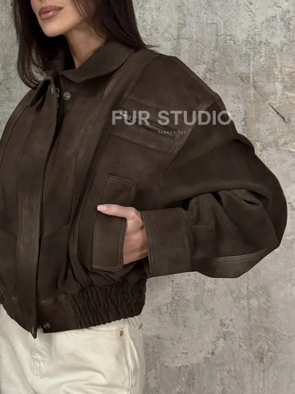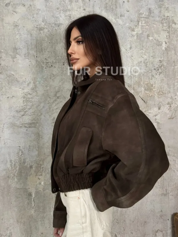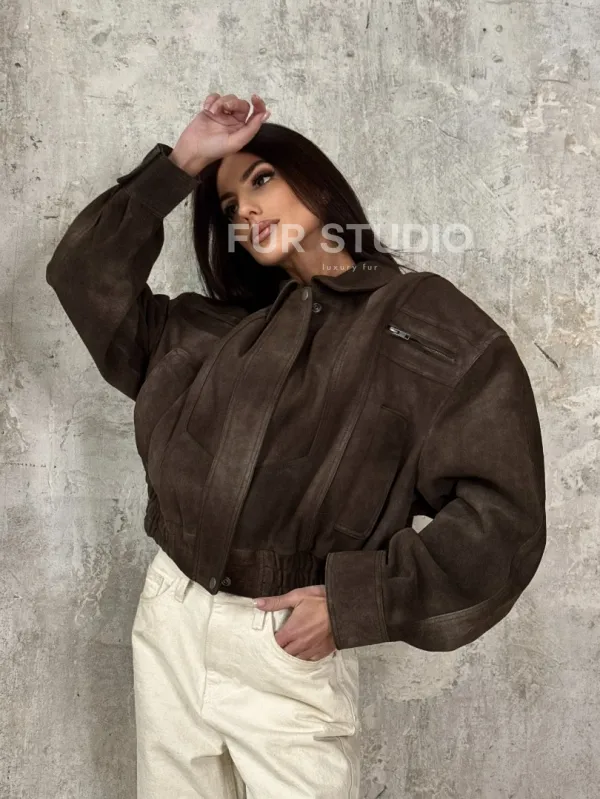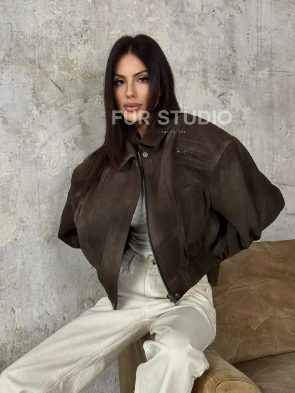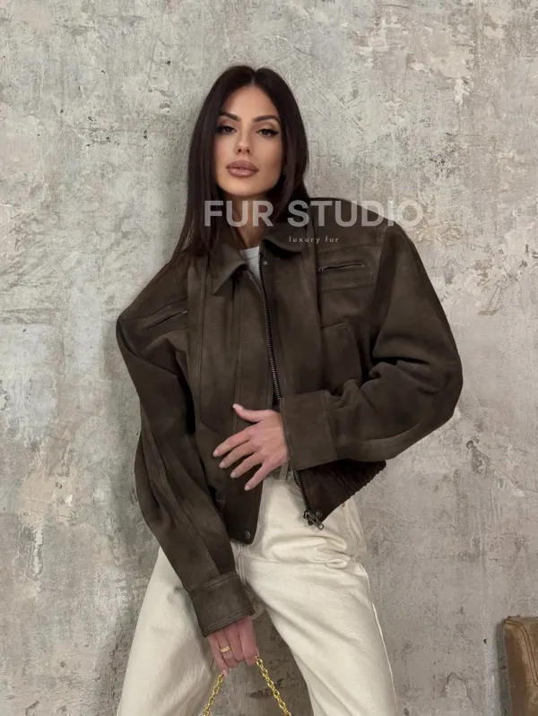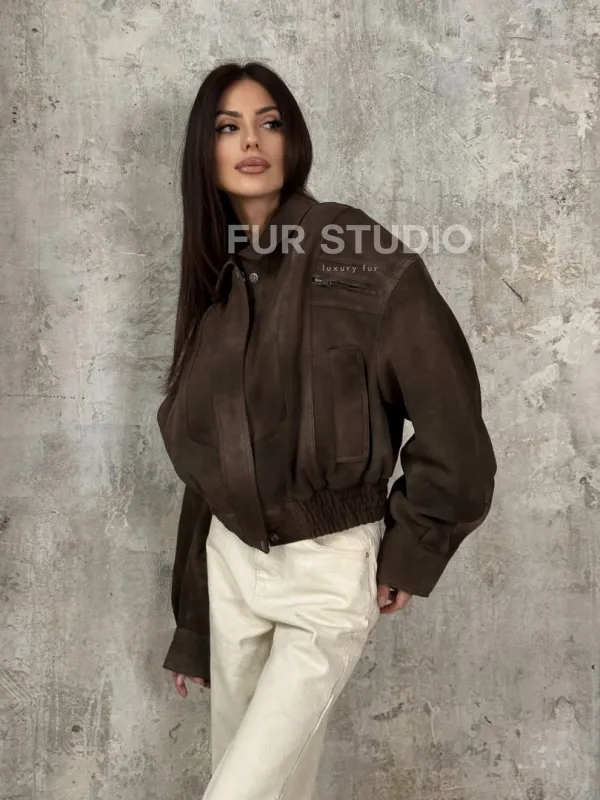 Восхититесь элегантностью и несравненным комфортом с нашей эксклюзивной коллекцией кожаных изделий. Изготовленная из первоклассной натуральной кожи, Современный кроп - бомбер из натуральной замши не только согреет вас в прохладные дни, но и подчеркнет ваш изысканный вкус. Уникальный дизайн и высокое качество делают наши представленные образцы идеальным выбором для утончённых образов.